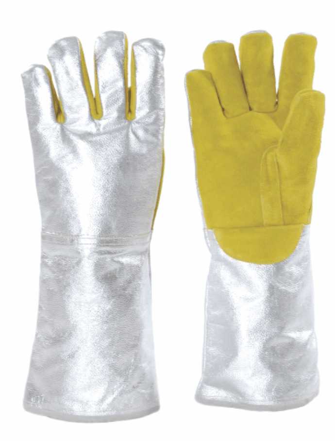 Luva de segurança com palma e polegar confeccionado em Kouríon®, com excelente resistência à altas temperaturas. Tira de reforço entre os dedos polegar e indicador, garantindo uma melhor resistência. Dorso e cano em Kouríon® Extra Aluminizado. Mão forrada com lã e revestida com tecido de algodão de alta qualidade e cano forrado com tecido de algodão que garante o conforto térmico e auxilia na absorção de suor proveniente da operação. Apresenta ótimos níveis de proteção para riscos térmicos e mecânicos, além de proporcionar conforto durante a atividade. Especialmente desenvolvida para proteção ao calor radiante até 1500 °C. Modelagem com opções de cano, de acordo com a necessidade do cliente, variando de 20 cm a 40 cm. Linha de costura de alta resistência térmica e mecânica.